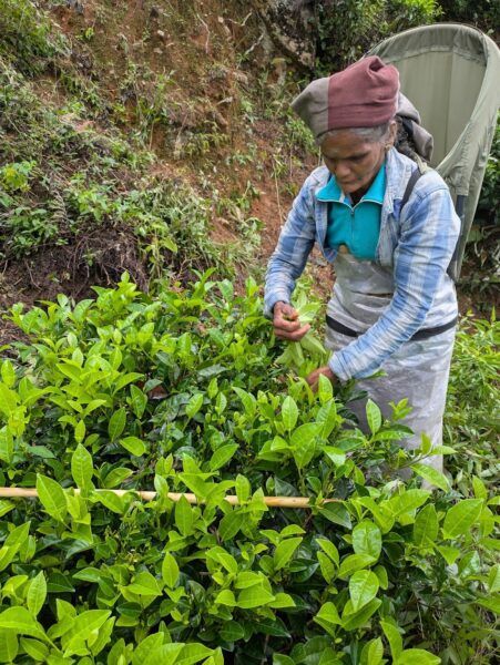 ▼タミル人の人々に、茶摘みの仕方を教わりました